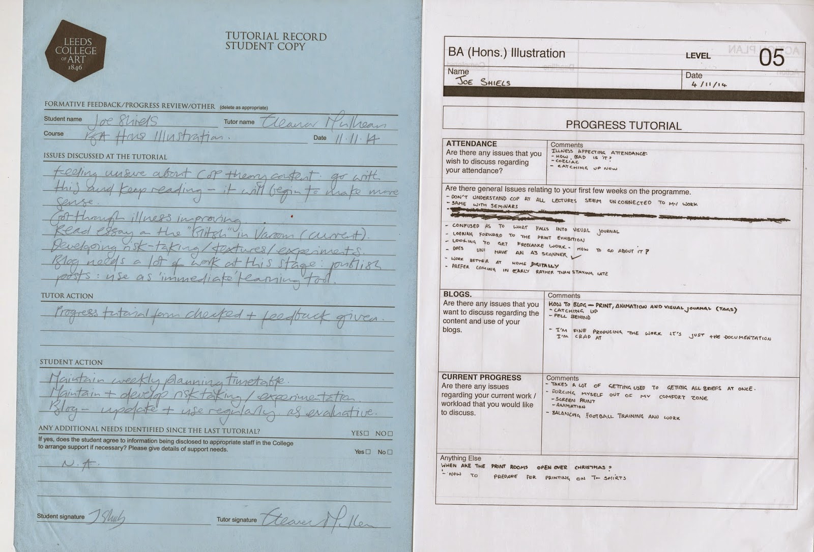 My tutorial was very useful and it's just highlighted the points I need to work on and catch up with after being ill, I also knew my blog was going to need a lot of work as I keep neglecting it and focusing on making the actual work instead. A lot of the feedback is just encouraging me to carry on with what I'm doing.
